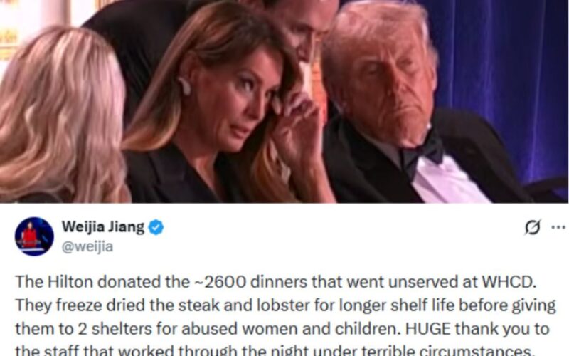 The White House Correspondents’ Dinner ended in chaos after a shooting cut the night short, but one strange question lingered after the ballroom cleared out: What happened to all that steak and lobster?